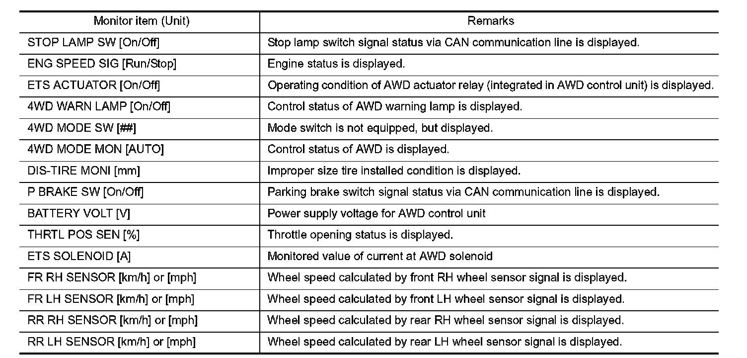 DIAGNOSIS SYSTEM (AWD CONTROL UNIT)