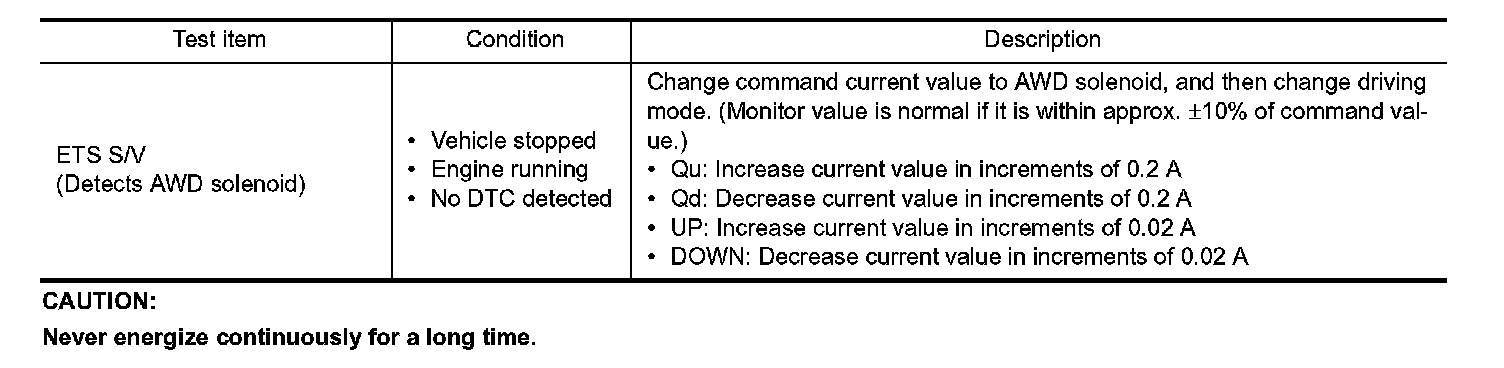 Use this mode to determine and identify the details of a malfunction based on self-diagnostic results or data monitor. AWD control unit gives drive signal to actuator with receiving command from CONSULT-III to check operation of actuator.