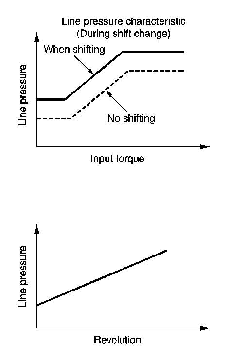 - In order to obtain the most appropriate line pressure characteristic to meet the current driving state, the TCM controls the line pressure solenoid current value and thus controls the line pressure.