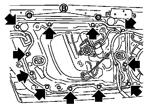 1. Remove the door glass. Removal and Installation.