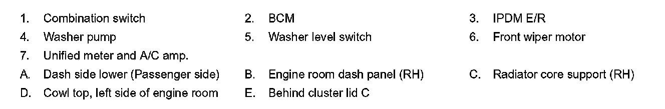 FRONT WIPER AND WASHER SYSTEM (WITHOUT RAIN SENSOR) FRONT WIPER AND WASHER SYSTEM (WITHOUT RAIN SENSOR) : Component Parts Location