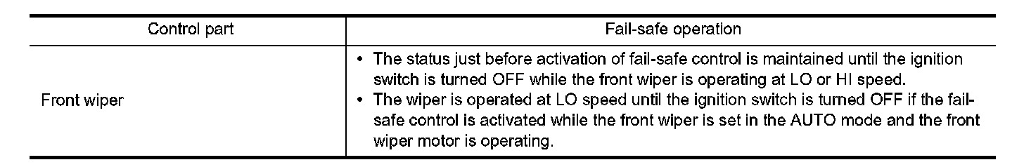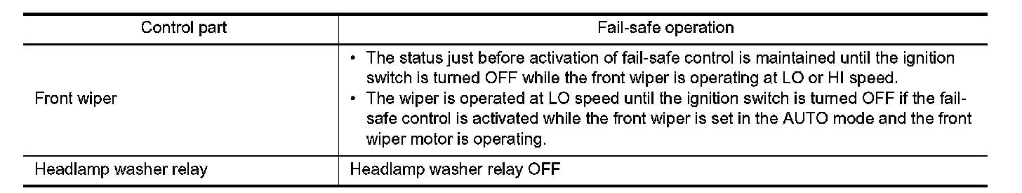 FRONT WIPER AND WASHER SYSTEM (WITHOUT RAIN SENSOR) : Fail-safe