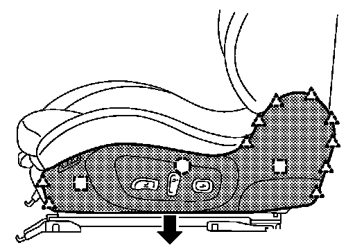 - Remove the seat cushion retainer, and then side air bag harness clamp and seatback heater unit harness connector.