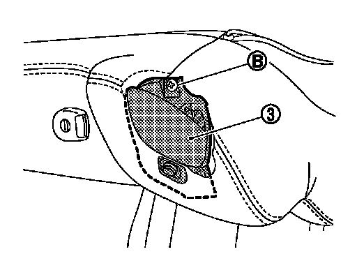 - Remove the screw (B), and then pull the seatback trim from the walk-in lever (3) and walk-in lever lower escutcheon.