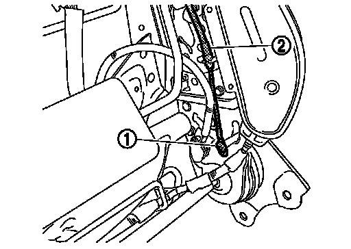 - Remove the reclining device wire (2) from the seatback frame and walk-in lever.