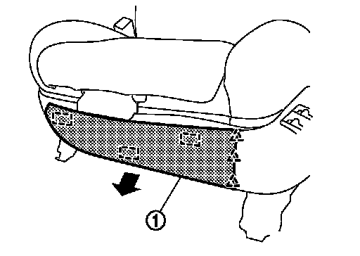Remove the metal clips, and then pull out seat cushion front finisher (1).
