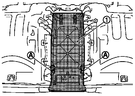 - Remove the clips (A) from the seat cushion backside, and then remove pawls when pulling the center tray (1).