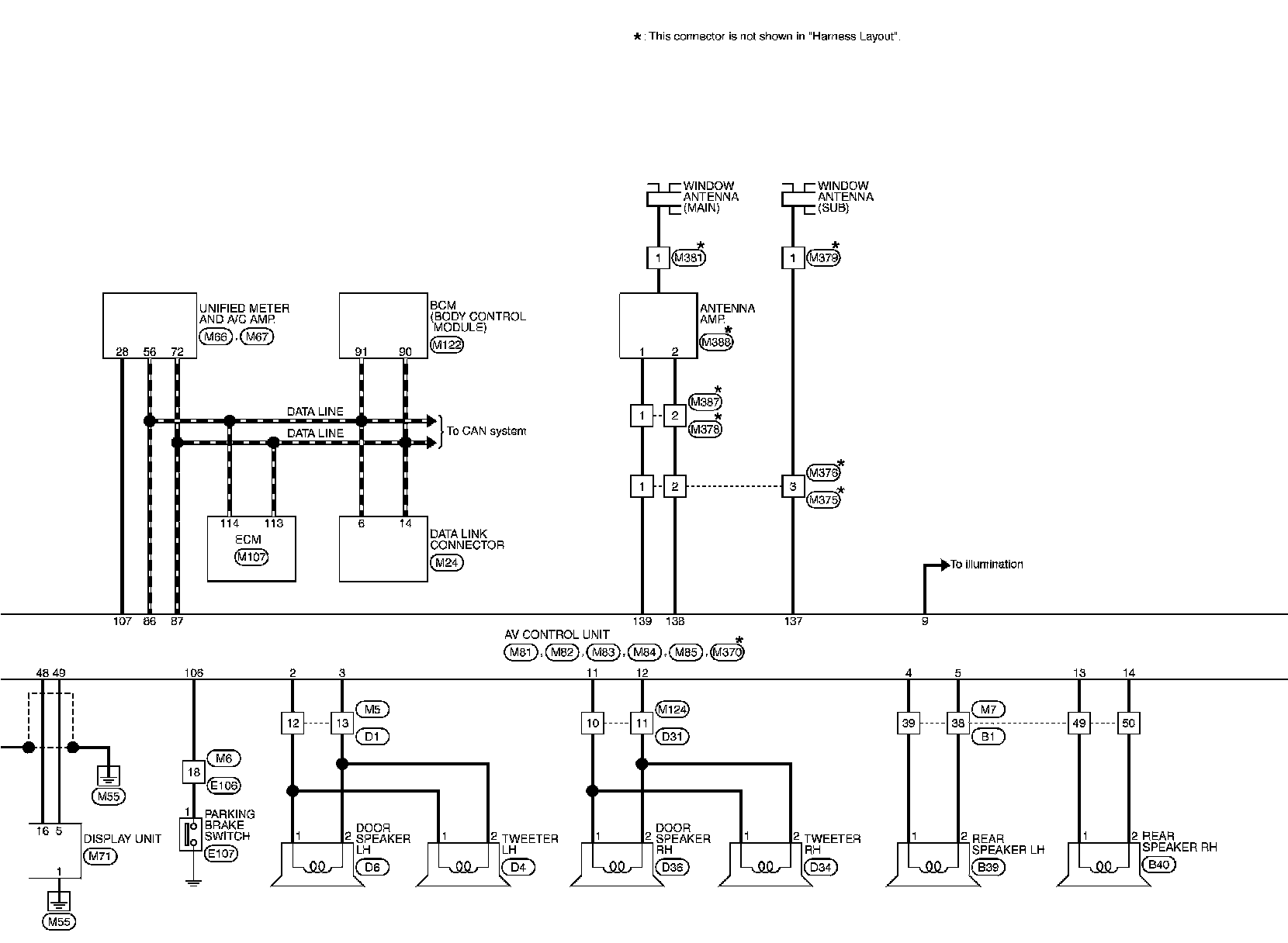 For connector terminal arrangements, harness layouts, and alphabets in a(option abbreviation; if not described in wiring diagram), Connector Information.