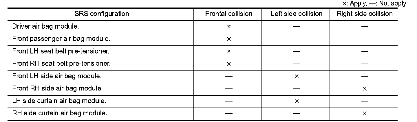 - The operation of supplemental restraint system is different depending on the collision modes applications.