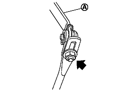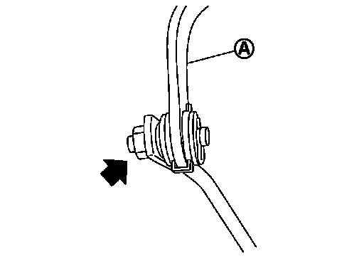 3.While pressing lower lever (A) toward rear of vehicle (in "P" position direction), tighten nut to specified torque. A/T Shift Selector (2WD) or Exploded View (AWD).