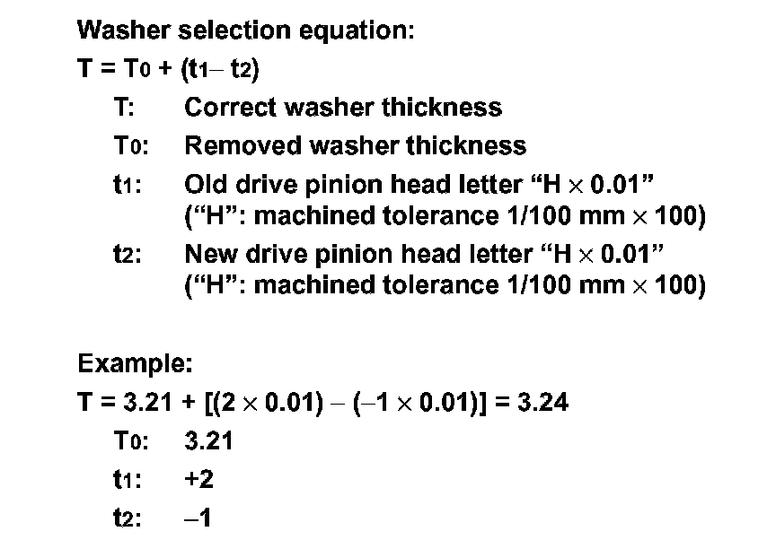 1.Use the formula below to calculate pinion height adjusting washer thickness.
