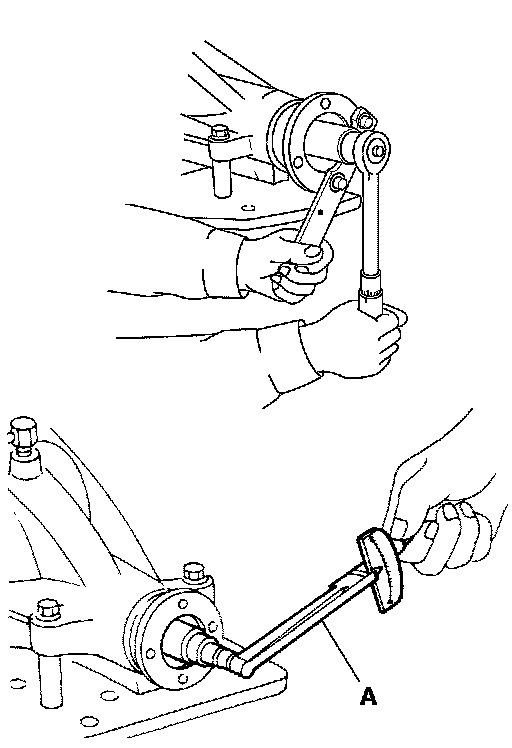 3.Temporarily tighten removed drive pinion lock nut to drive pinion, using flange wrench (commercial service tool).
