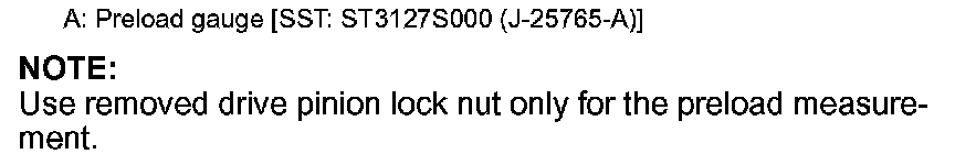 5.Tighten to drive pinion lock nut, while adjust pinion bearing preload torque, using preload gauge [SST: ST-3127S000 (J-25765A)].