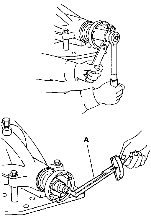 7.Using suitable spacer (A) (commercial service tool), press the pinion front bearing inner race to drive pinion as far as drive pinion nut can be tightened.