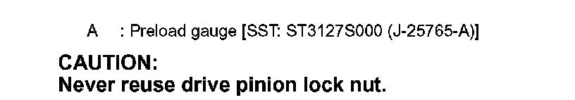 11.Adjust to the drive pinion lock nut tightening torque and pinion bearing preload torque, Preload gauge [SST: ST-3127S000 (J25765-A)].