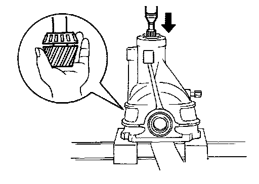 11.Tap pinion front/rear bearing outer races uniformly using a brass rod or equivalent to remove them.