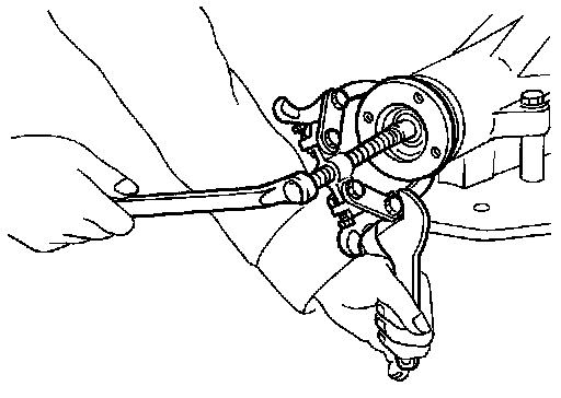 2.Remove drive pinion lock nut with the flange wrench (commercial service tool).