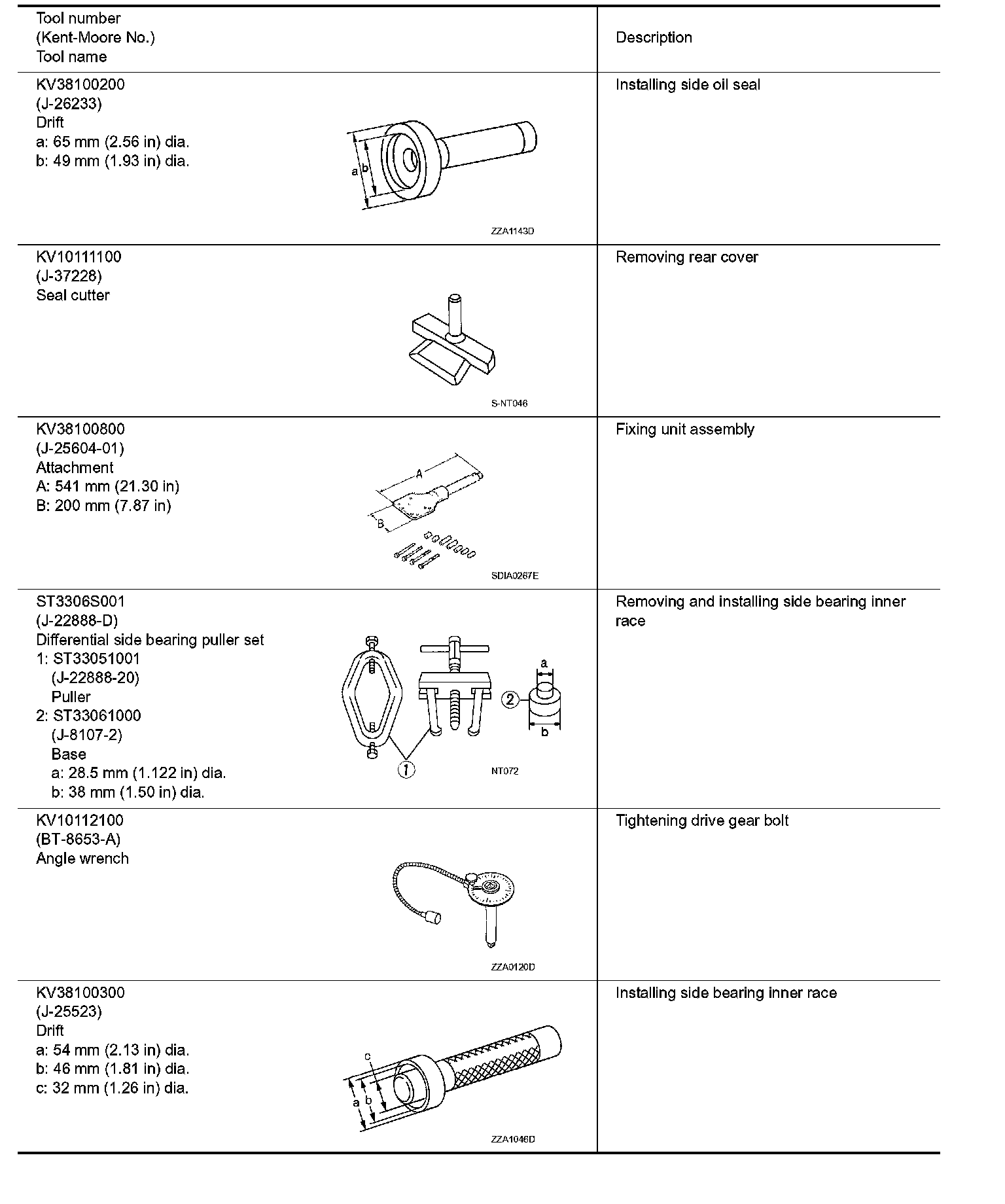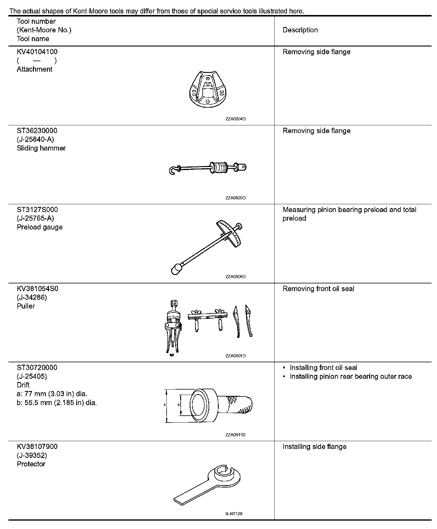 The actual shapes of Kent-Moore tools may differ from those of special service tools illustrated here.