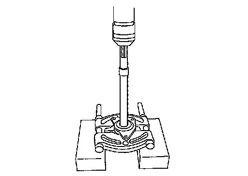 1.Hold extension tube retainer with puller (commercial service tool), then press out side shaft using a press.
