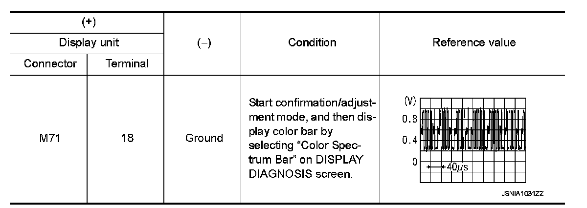 3.Check continuity between display unit harness connector and AV control unit harness connector.