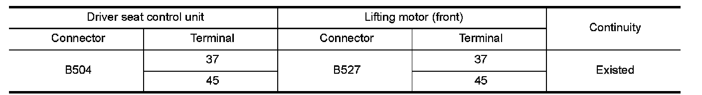 3.Check continuity between driver seat control unit harness connector and lifting motor (front) harness connector.