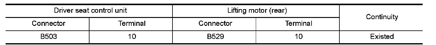 3.Check the continuity between driver seat control unit harness connector and lifting motor (rear) harness connector.