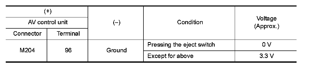 The eject signal is output to AV control unit when the eject switch of multifunction switch is pressed.