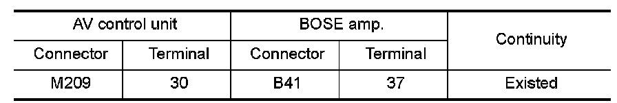 3.Check continuity between BOSE amp. harness connector and AV control unit harness connector.