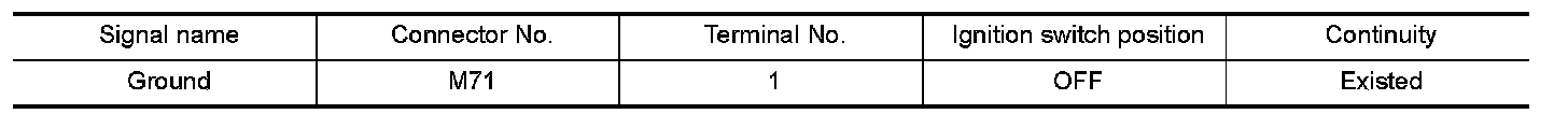 3.Check continuity between display unit harness connector M71 and AV control unit harness connector.