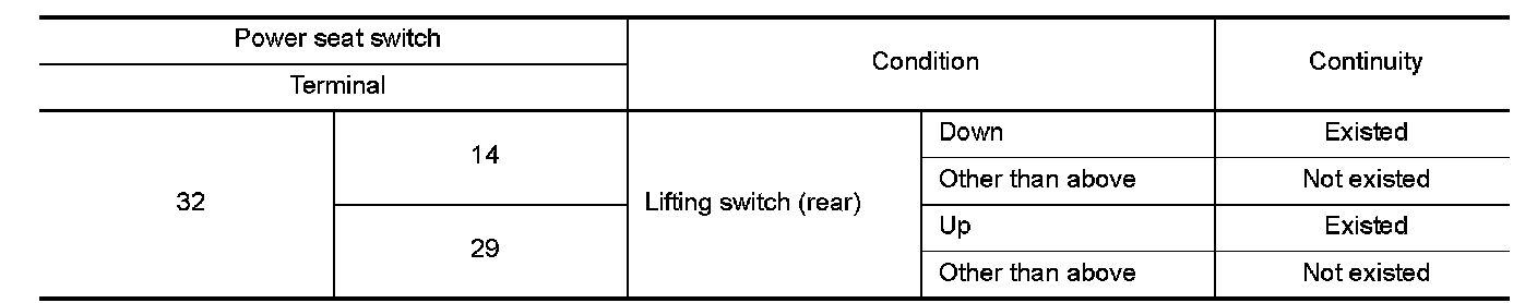 NO- Replace power seat switch. Refer to "Removal and Installation" Power Seat Switch.