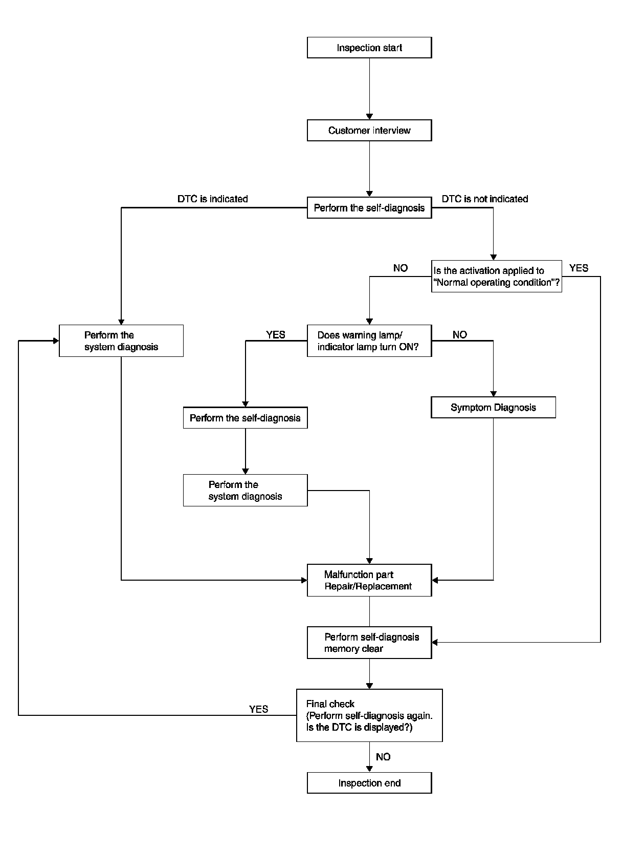 Get the detailed information from the customer about the symptom (the condition and the environment when the incident/malfunction occurred) using the diagnosis work sheet. Refer to "Diagnostic Work Sheet" Diagnostic Work Sheet.