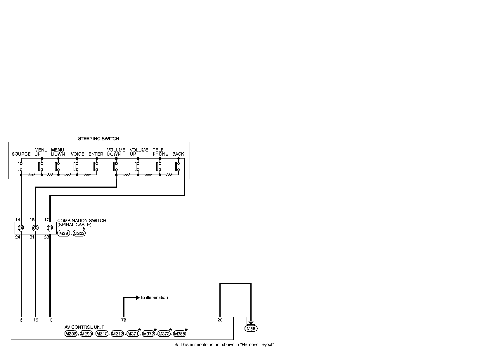 For connector terminal arrangements, harness layouts, and alphabets in a(option abbreviation; if not described in wiring diagram), refer to "Connector Information" Connector Information.