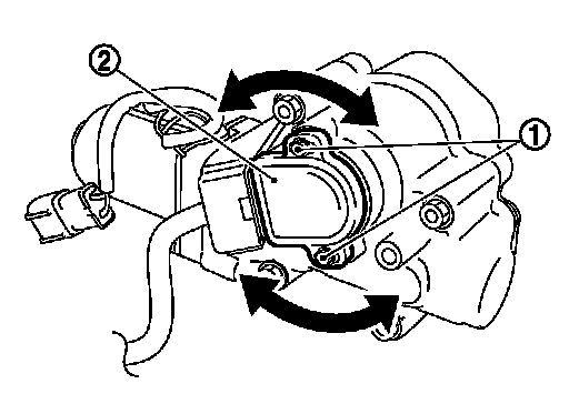 7.Turn the VVEL control shaft position sensor (2) right and left while monitoring the output voltage of "VVEL POSITION SENB1" or "VVEL POSITION SEN-B2" and adjust the output voltage to be within the standard value.