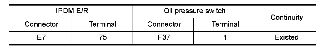 3.Check continuity between IPDM E/R harness connector terminal and oil pressure switch harness connector terminal.