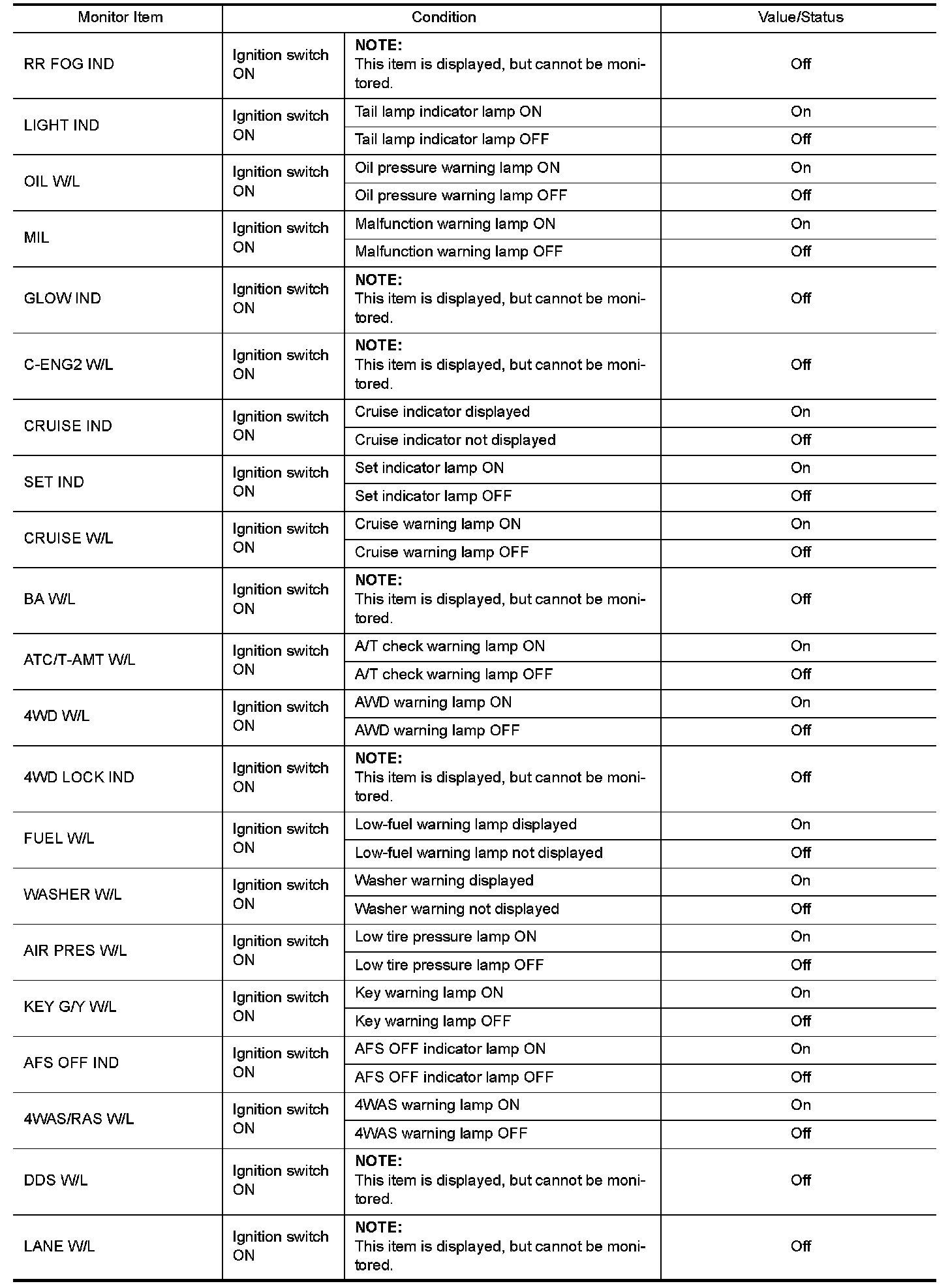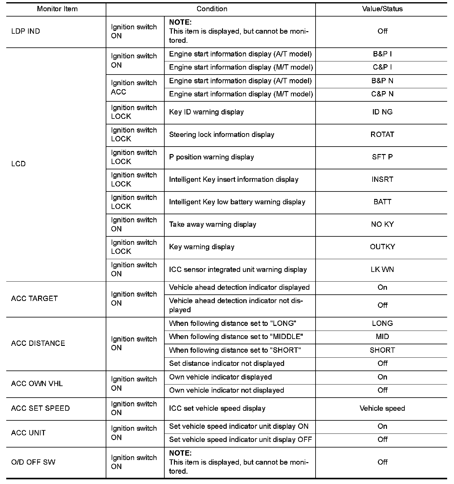 The following table includes information (items) inapplicable to this vehicle. For information (items) applicable to this vehicle, refer to CONSULT display items.