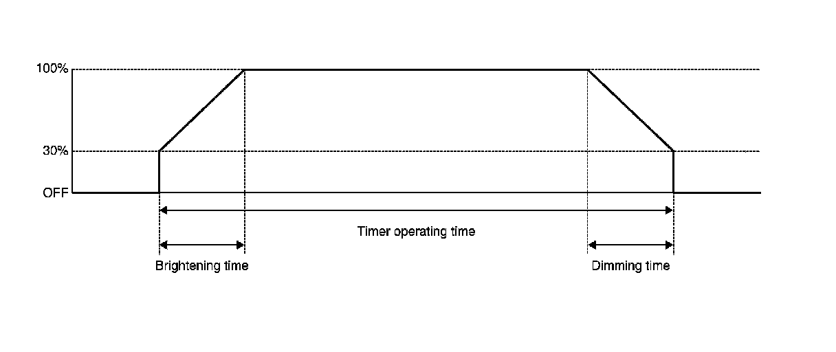 - The interior room lamp turns ON and OFF (gradual brightening and dimming) by the interior room timer.