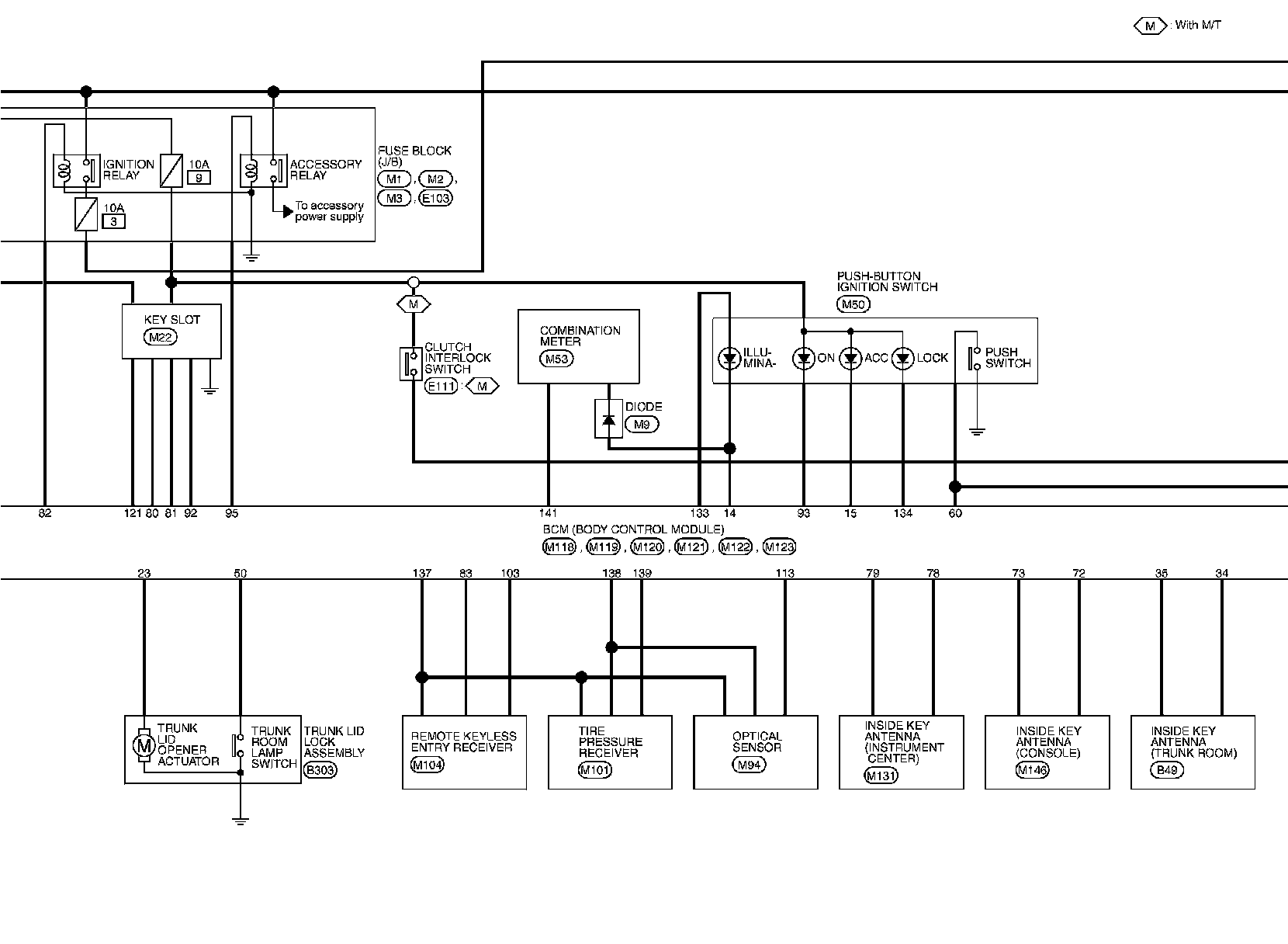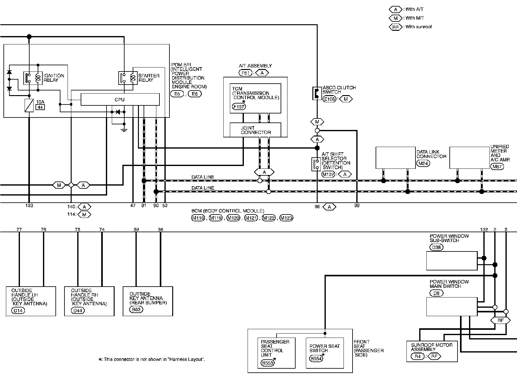 For connector terminal arrangements, harness layouts, and alphabets in a (option abbreviation; if not described in wiring diagram), refer to "Connector Information" Connector Information.