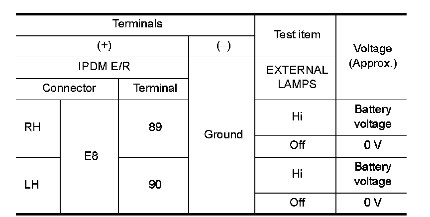 1. CHECK HEADLAMP (HI) OUTPUT VOLTAGE