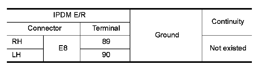 2.Check continuity between the IPDM E/R harness connector terminal and the ground.