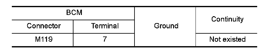 5. With operating the test item, check continuity between BCM harness connector and the ground.