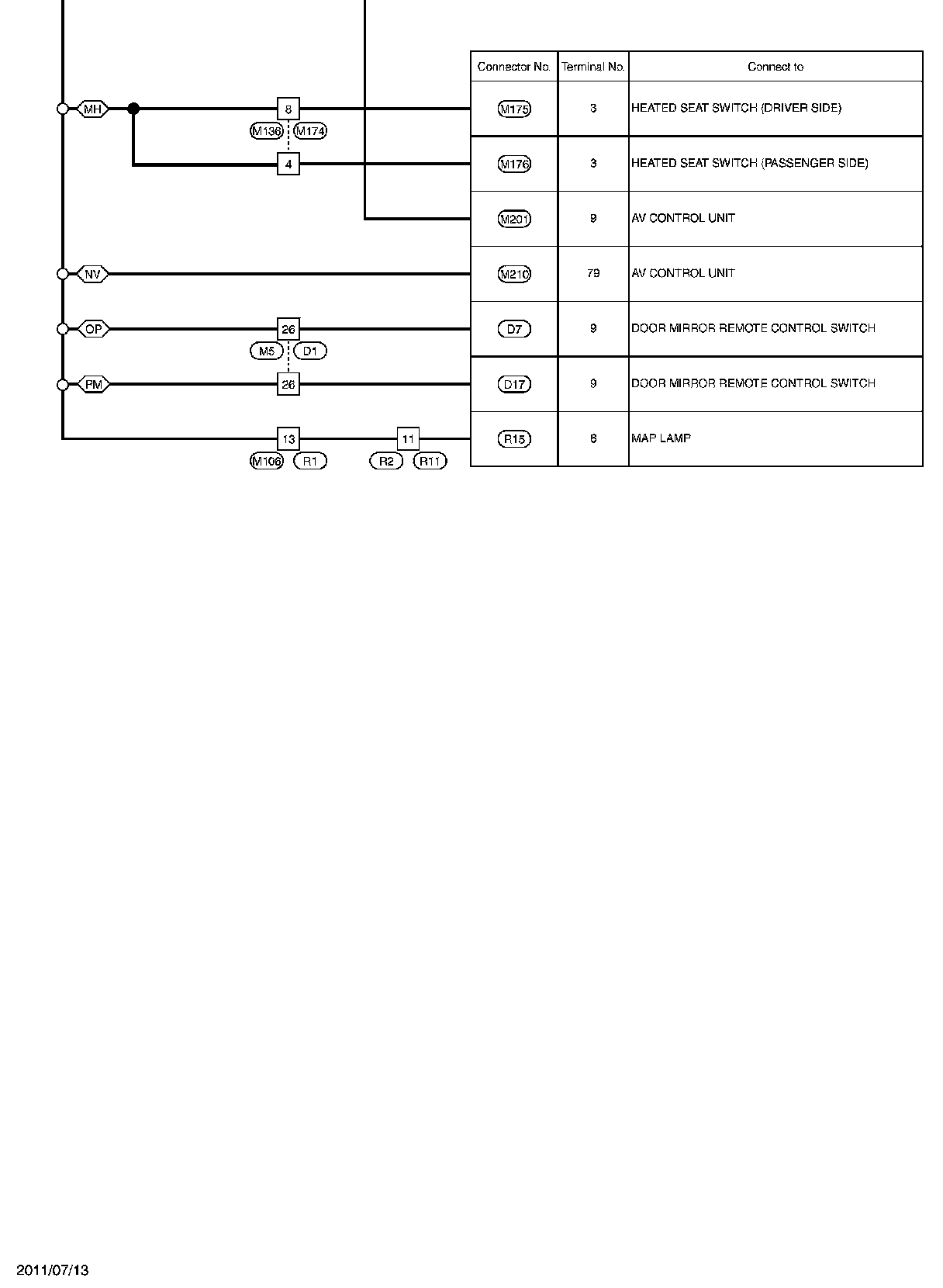 For connector terminal arrangements, harness layouts, and alphabets in a (option abbreviation; if not described in wiring diagram), refer to "Connector Information" Connector Information.