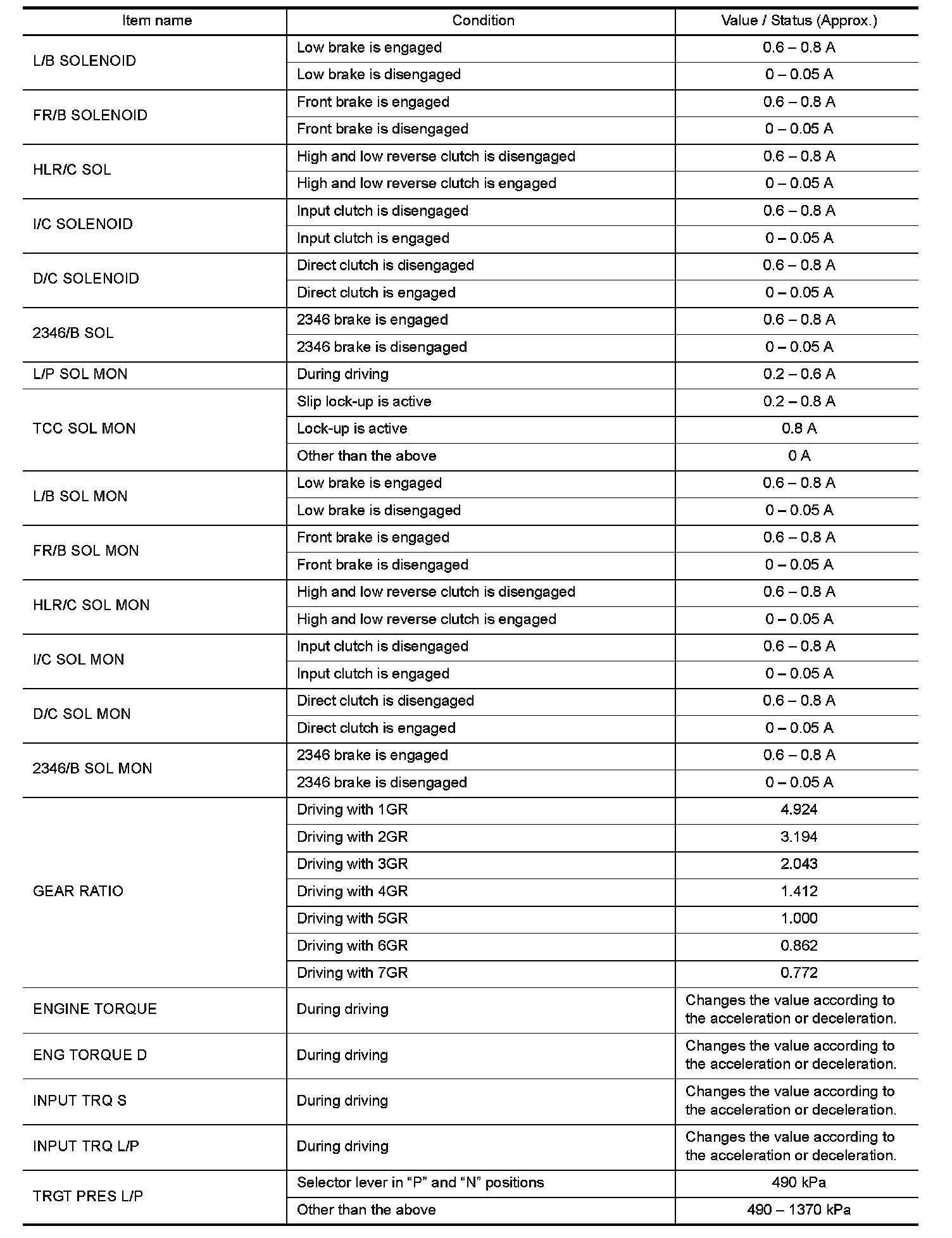 3.Shift schedule (that implies gear position) on CONSULT may slightly differ from that is described in Service Manual. This occurs because of the reasons as per the following: