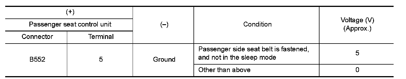 5. CHECK PASSENGER SEAT CONTROL UNIT OUTPUT SIGNAL