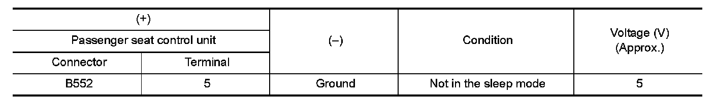 2.Check voltage between passenger seat control unit harness connector and ground.