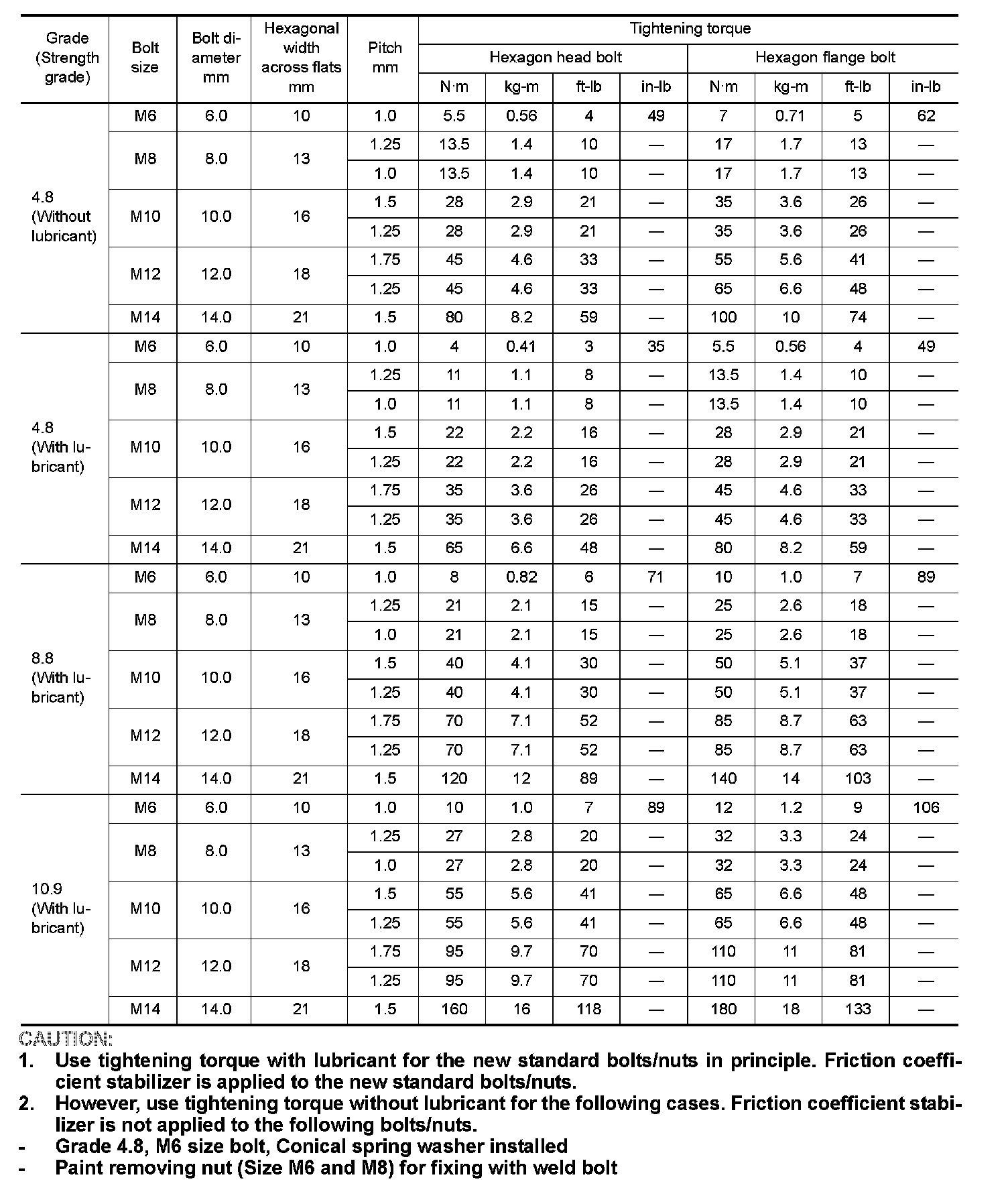 1.Use tightening torque with lubricant for the new standard bolts/nuts in principle. Friction coefficient stabilizer is applied to the new standard bolts/nuts.