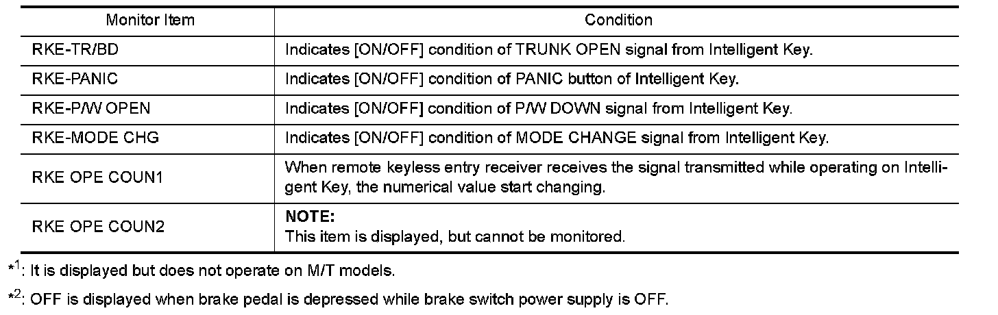 The following table includes information (items) inapplicable to this vehicle. For information (items) applicable to this vehicle, refer to CONSULT display items.