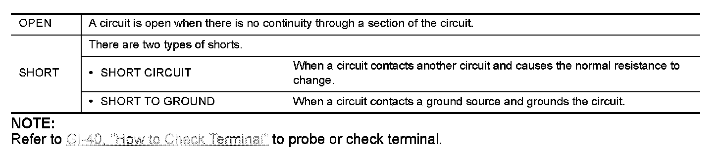 Refer to "How to Check Terminal" How to Check Terminal to probe or check terminal.