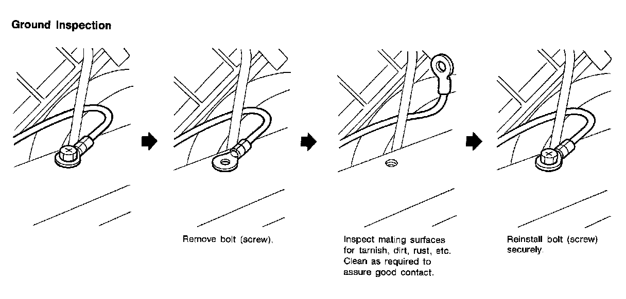- If several wires are crimped into one ground eyelet terminal, check for proper crimps. Check all of the wires are clean, securely fastened and providing a good ground path. If multiple wires are cased in one eyelet check no ground wires have excess wire insulation.