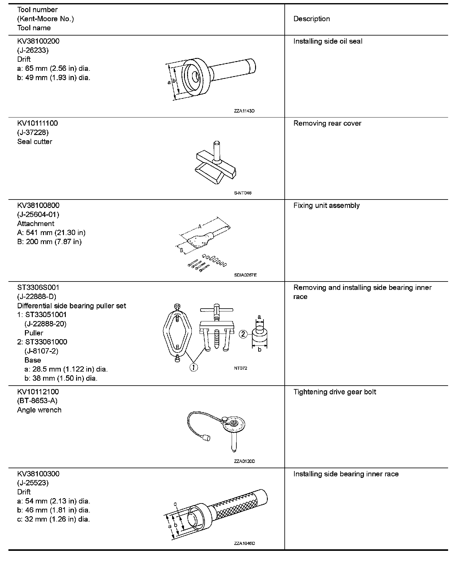 The actual shapes of Kent-Moore tools may differ from those of special service tools illustrated here.