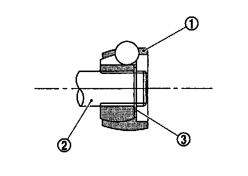 4.Install ball cage/steel ball/inner race assembly (1) to shaft (2), and secure them tightly with a snap ring (3).